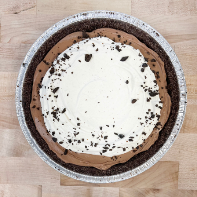 🍫 Chocolate Cream Pie: Rich chocolate pastry cream baked in our homemade chocolate sable cookie crust, topped with fresh whipped cream, more chocolate cookie crumbles & a drizzle of dark chocolate ganache