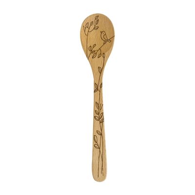 12" mixing spoon with nature design - birds, leaves, and flowers